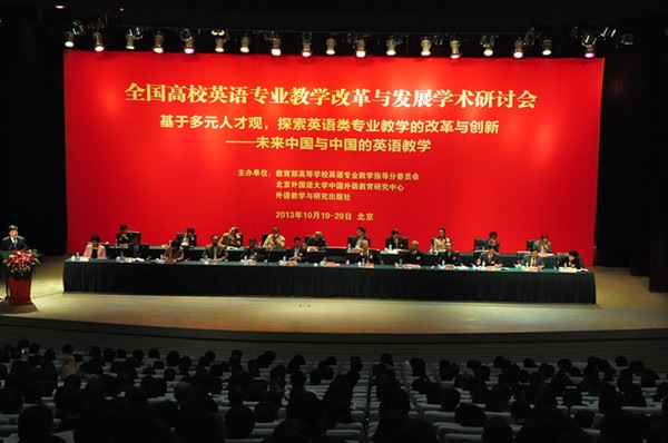 2013年10月18-20日,“全国高校英语专业教学改革与发展学术研讨会”在北京外研社国际会议中心隆重开幕。来自全国29个省、市、自治区640多所高校(全国设有英语专业的院校共994所)的外语教育界专家学者、高校外语院系负责人及一线教师代表共1000余人集聚北京大兴,以“基于多元化人才观,探索英语类专业教学的改革与创新”为主题,共商英语类专业(含英语、翻译与商务英语三个专业)国家质量标准的设立与教学改革发展的方向。色色啦