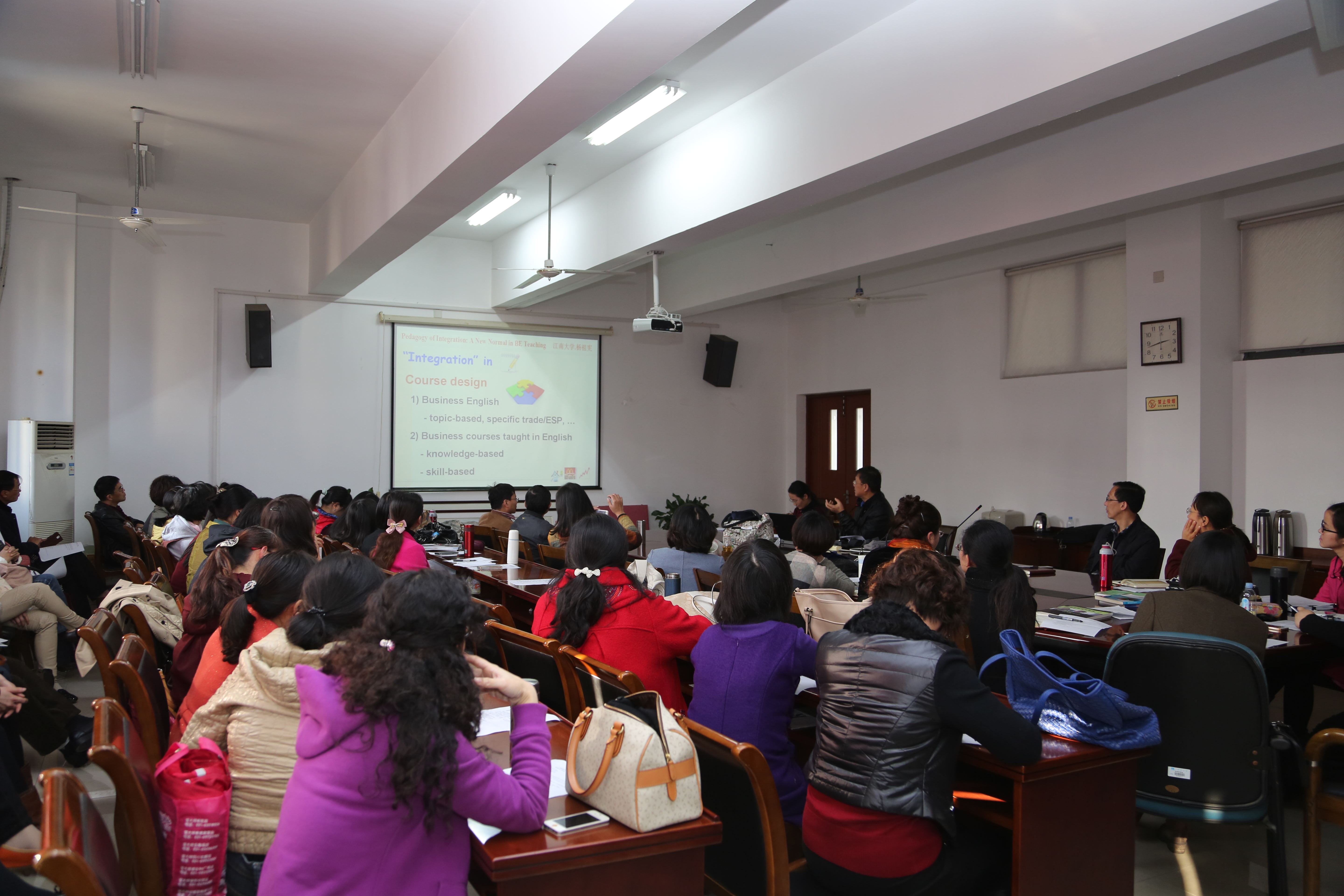1126日下午,色色啦 文科楼的大会议室里,来自大外部的全体教师和英语专业的部分教师汇聚一堂,聆听了一场精彩的讲座《“集成教学法”:商务英语教学中的新常态》,主讲人为英语专业的杨祖宪副教授。此次教研活动是我校大学英语2014教改方案实施以来针对新模块课程教学开出的第一次院内专家讲座。