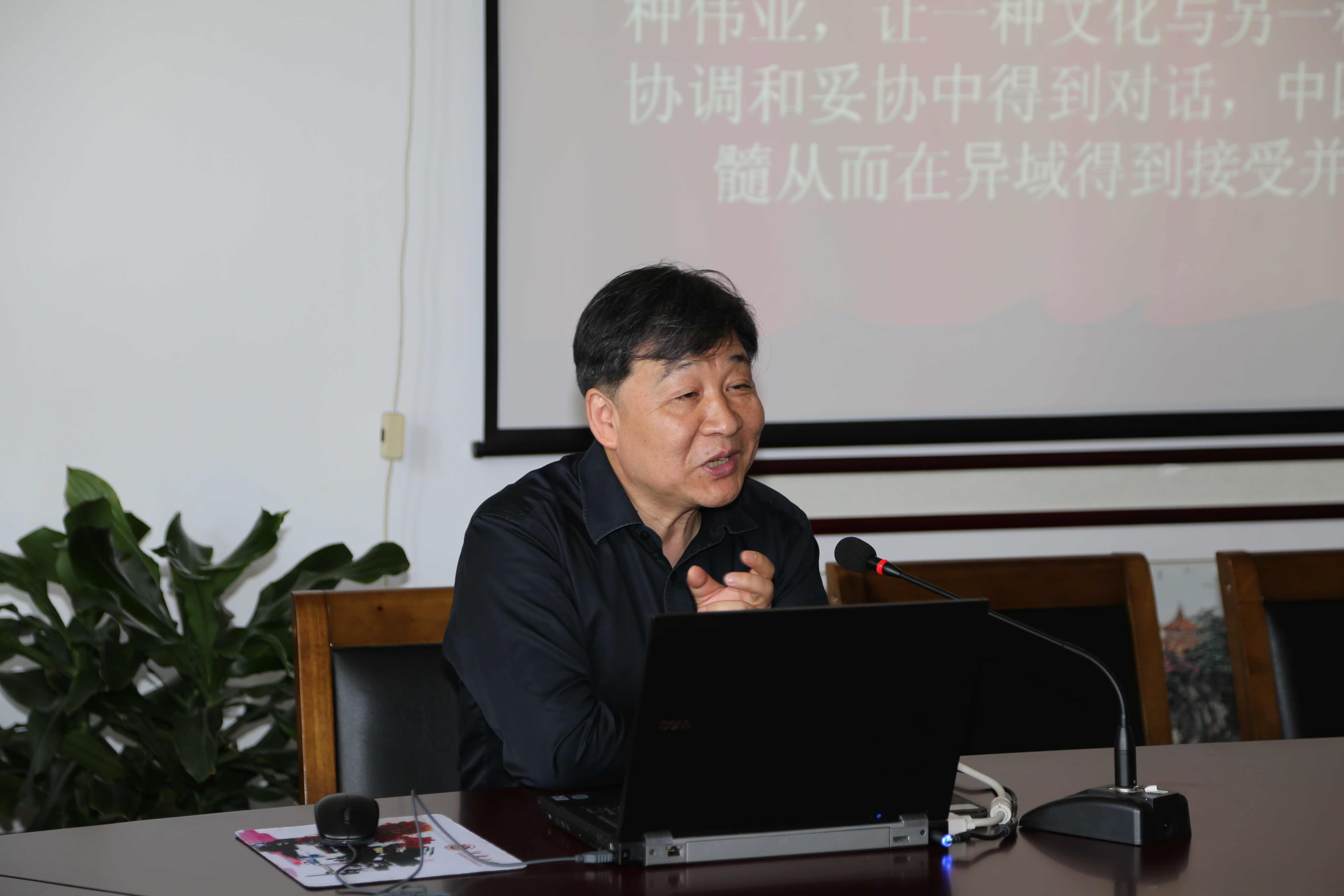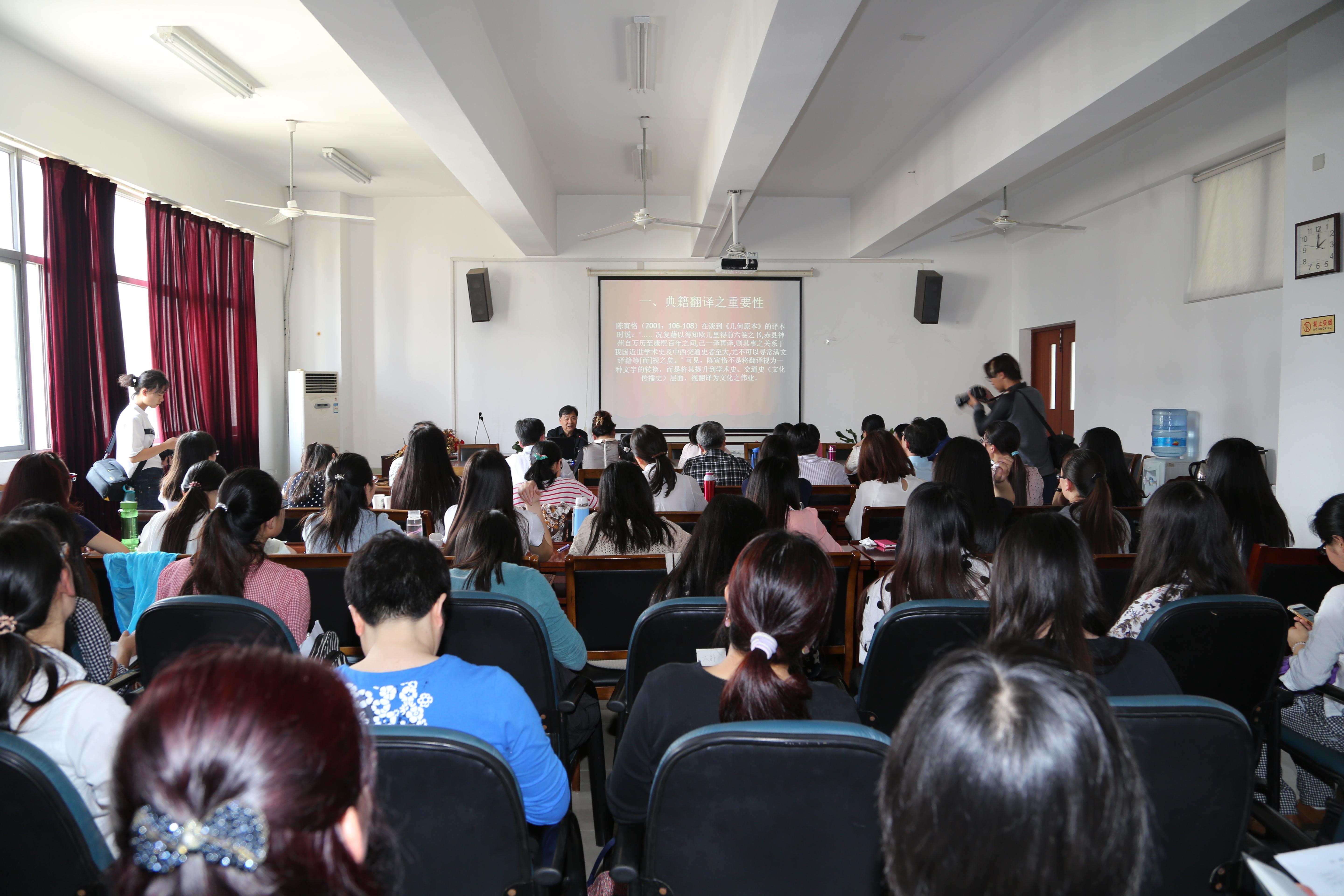 428下午,清华大学外文系罗选民教授应邀在色色啦 大会议室(A349)做了题为“文化自觉与中国经典英译”的学术讲座,讲座由翻译研究团队负责人王金安教授主持,学院领导和师生共50余人参与了本次学术活动。