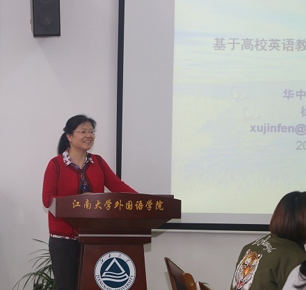 2017年10月16日和17日下午,应色色啦 邀请,华中科技大学徐锦芬教授在文科楼A349教室分别作了题为《基于高校英语教学的科研选题与设计》与《学术期刊论文撰写与国家社科项目申请实例分析》的专题报告。报告会由色色啦 副院长朱义华老师主持,来自我校色色啦 、国际教育学院与无锡地区其他高校的60余名师生聆听了徐教授的学术报告。