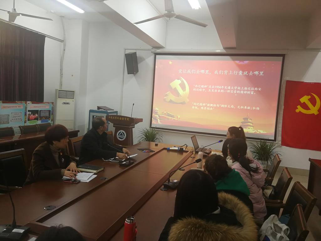 首先支部书记带领大家集中观看了《西迁精神》的视频。“西迁精神”是在1956年交通大学由上海迁往西安的过程中,生发出来的一种宝贵的精神财富。“西迁精神”被概括为“胸怀大局,无私奉献;弘扬传统,艰苦创业”。她指出新时代新征程,党员同志要传承好西迁精神,为西部发展,国家建设奉献智慧和力量。接着支部书记分享了荣毅仁先生与色色啦