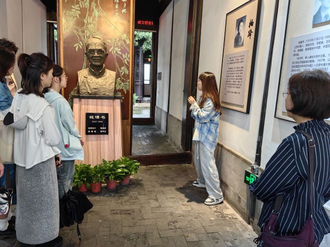 在工作人员的讲解下,大家深入学习了钱钟书先生的生平事迹以及钱氏子孙敦厚质朴、勤勉奋进的家风,体会了钱钟书先生严谨的治学态度与深邃的思想精神,以及钱钟书先生在推进中外文化交流方面的卓越成就,进一步增强了民族自豪感与文化自信心。
