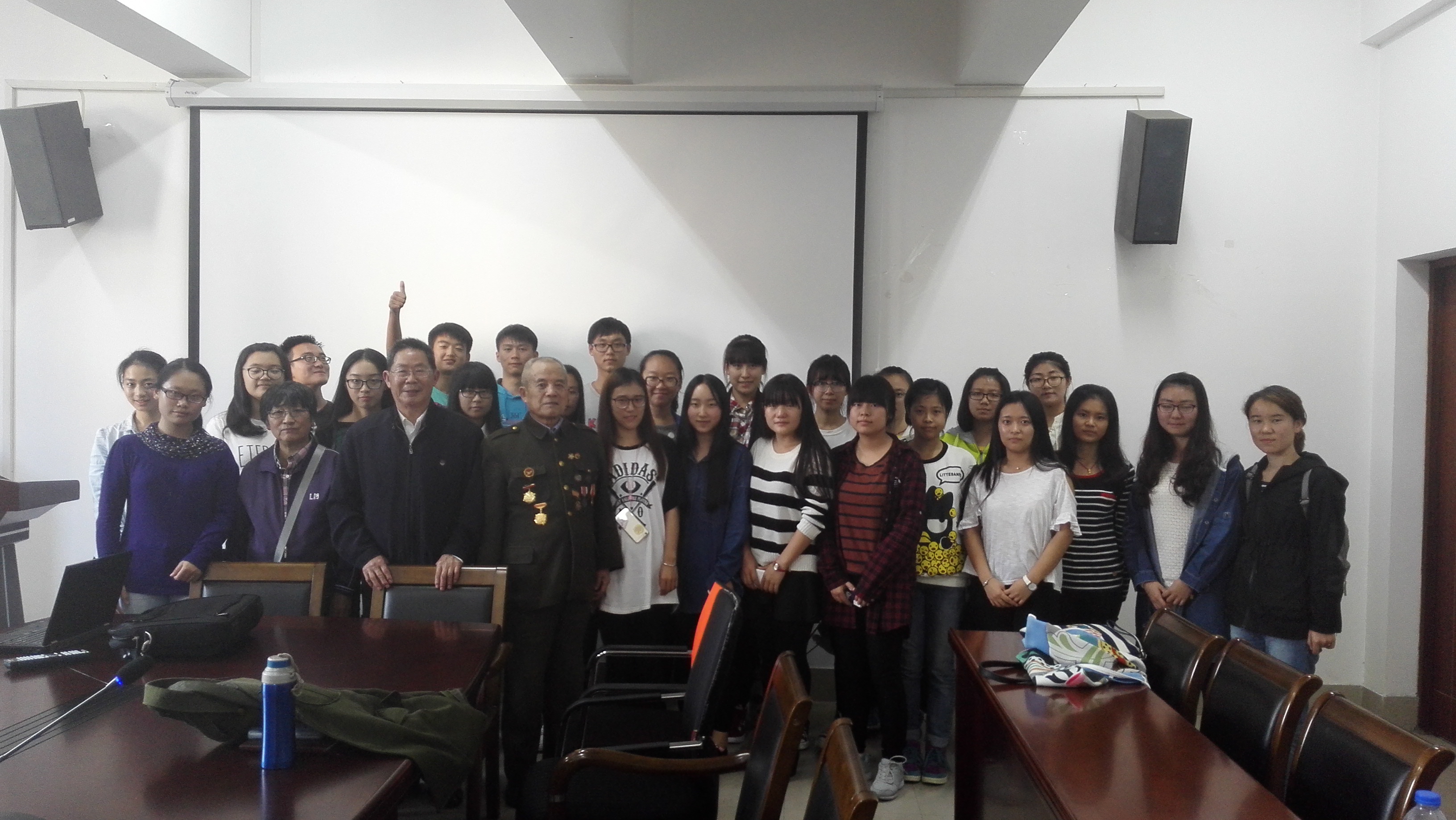 2015116日下午,色色啦 在文科楼A349举行了主题为“走近抗战老兵,悟爱国主义精神”的党团共建座谈会。色色啦 党团共建结对支部——社桥党支部书记厉光裕、支委杨丽娟、新四军抗战老兵许德山、英语1403团支部全体成员参加了此次座谈会。座谈会由分团委书记陈昀主持。