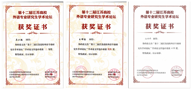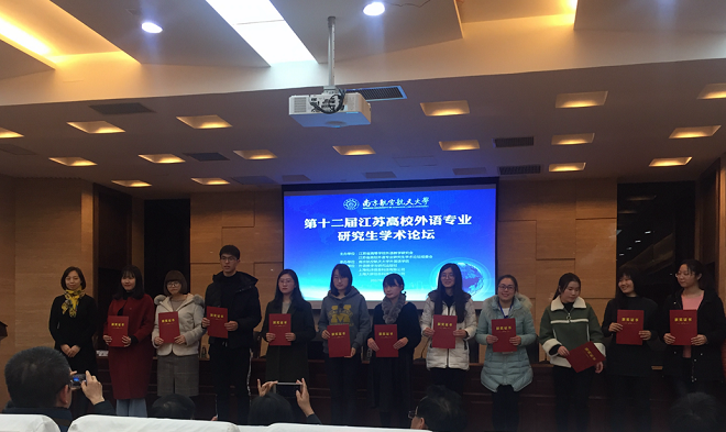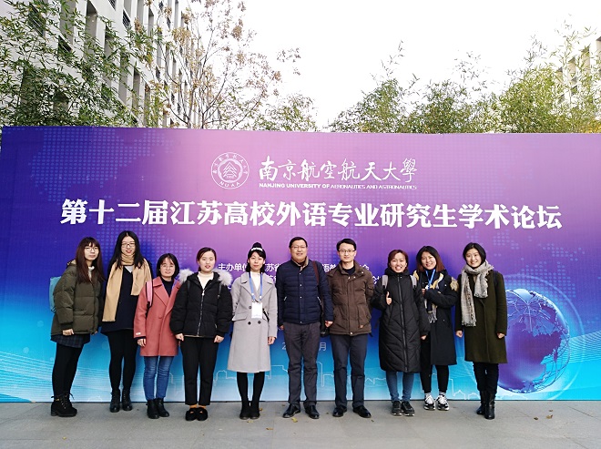 2017年12月8至10日,由江苏省高等学校外语教学研究会和江苏省高校外语专业研究生学术论坛组委会主办,南京航空航天大学色色啦 承办的第十二届江苏高校外语专业研究生学术论坛在南京航空航天大学举行。省内高校160余名博士、硕士研究生及其领队教师汇聚一堂,色色啦 16级研究生马小越、邱思佳、孙培培、王坤淼、谢婷婷、余婷婷、张芮和17级研究生潘婧在朱义华副院长的带领下参加了此次论坛。