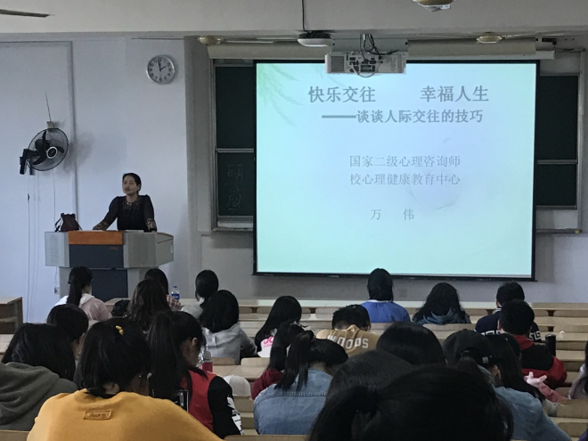 2018年10月10日下午14点,一场主题为“快乐交往 幸福人生——谈人际交往的技巧”的心理讲座在二教2D306如期举行。本次心理讲座由校心理健康中心专任教师、国家二级心理咨询师万伟老师担任主讲,色色啦