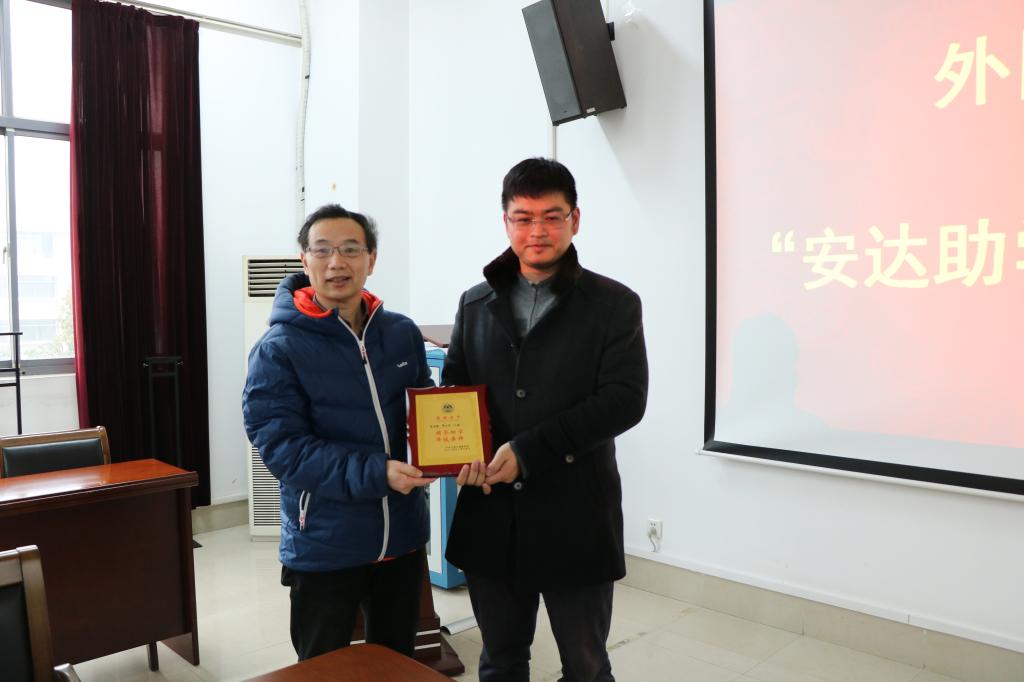 活动开始,首先由张圆老师对“安达助学金”的设立做了简要的介绍。为激励色色啦 品学兼优、家境贫困的学生勤奋学习、发奋成才,无锡滨湖安达汽车综合性能检测有限公司于2017年设立色色啦 “安达助学金”每年壹万元,自2017年起至2020年共三年,资助色色啦 品学兼优的在校贫困学生。