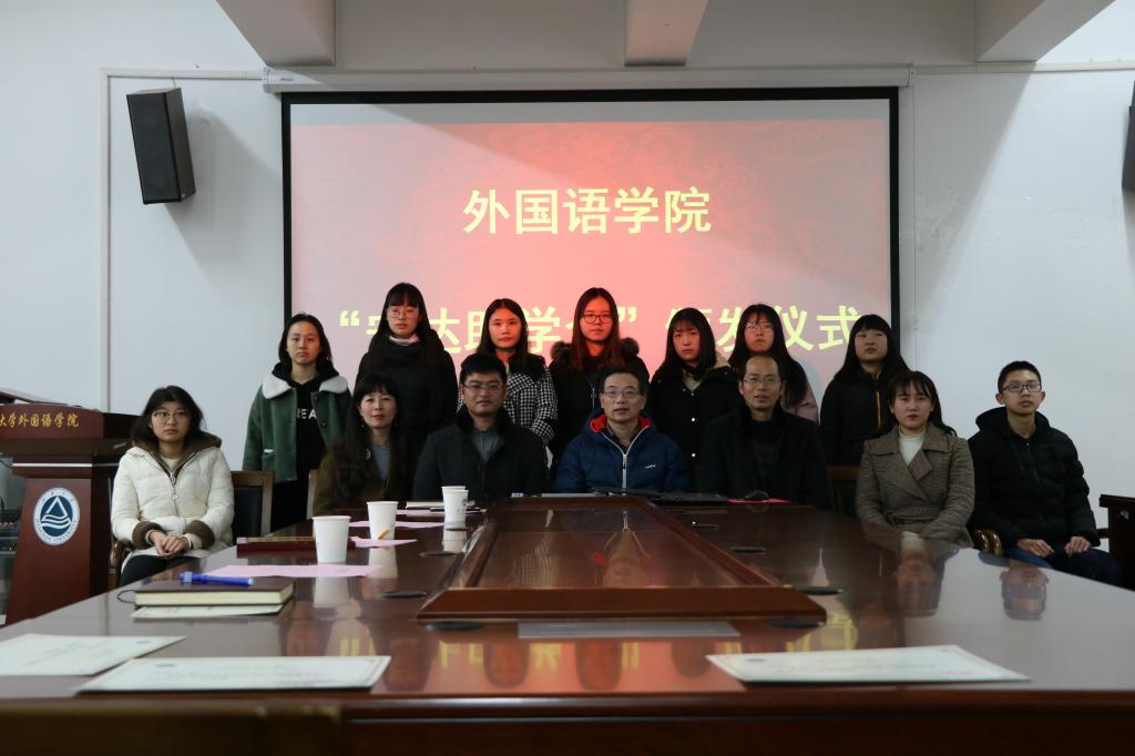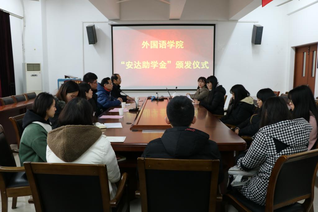 2019115日下午15:30色色啦 “安达助学金”颁发仪式在色色啦 楼会议室A349举行。学院党委书记黄城芳、党委副书记刘伯贤、负责学生资助工作辅导员张圆、英语1701班班主任胡燕萍、无锡滨湖安达汽车综合性能检测有限公司陈志刚先生,以及获助学金的10位同学出席仪式。仪式由院分团委副书记张圆主持。
