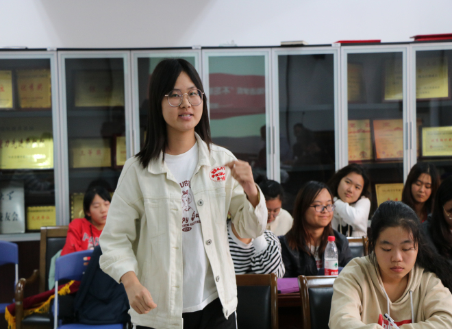 在聆听了老党员的分享后,青年学生也纷纷谈了自己对初心的感悟。英语1805班石超琴分享了自己对初心的理解,由此思考我们党团共建的初心是引领青年健康成长,成长为国之栋梁、民族希望。英语1803班张英杰认为初心是对梦想的坚守,无论在哪里,坚持梦想,初心永在。史雪茹、杨鑫科、夏琴美、洪智超等同学分别分享了自己的青春故事和初心梦想。从同学们的发言中,了解了大家对初心的理解,更感受到了青年的梦想与希望。在场的老党员对团员代表的发言表示肯定与赞扬。