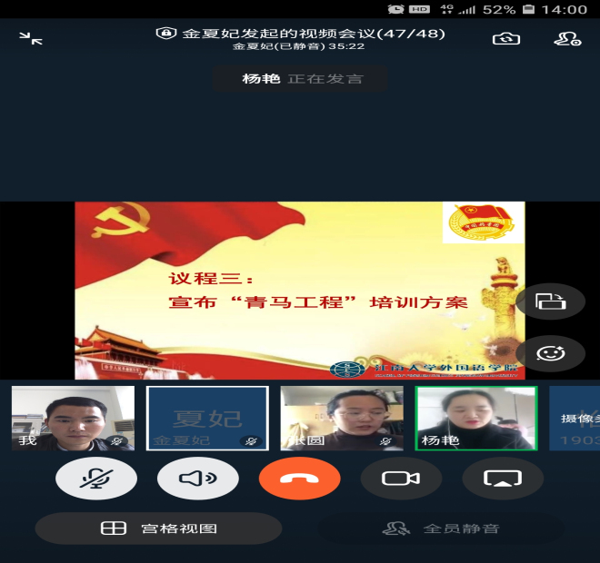 青年马克思主义者培养工程训练营(以下简称院“青马工程”)开班仪式在钉钉平台举行。学院党委副书记、副院长刘伯贤,分团委书记杨艳,辅导员苗文建以及本期43名青马训练营成员参加“云端”开班仪式。开班仪式由分团委副书记张圆主持。