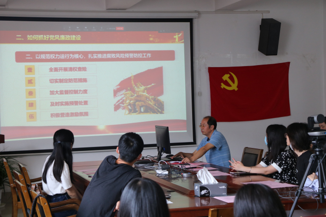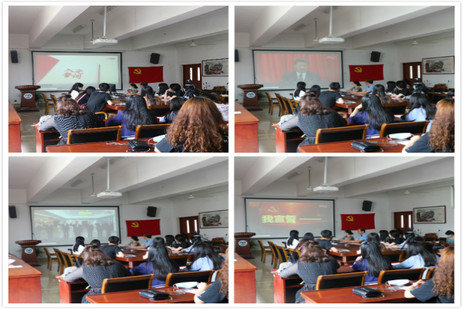 在A349会议室举行2020届毕业生党员主题教育活动暨新发展党员七一宣誓仪式。参加这次活动的有学院党委副书记刘伯贤、分团委书记杨艳、学院辅导员以及毕业生党员。仪式由杨艳主持。