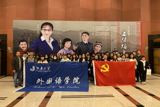 学生党员、团员代表在学院党委书记史志洪、党委副书记刘伯贤的带领下来到无锡市人民大会堂,观看原创大型现代锡剧《追梦路上》,共同追忆缅怀“时代楷模”黄文秀同志,真情致敬扶贫路上的最美奋斗者。