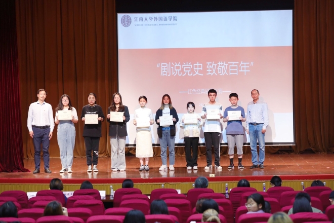 最后,主持人公布了本次比赛的结果。日语1902班剧目《狂飙》摘得了桂冠。至此,本次“剧说党史致敬百年”红色经典剧目大赛圆满落幕。本次活动使同学们感受革命年代的历史风云,感悟革命英雄身上坚定的信仰和伟大的精神,通过再现红色经典剧目号召同学们紧跟红色足迹,弘扬红色精神,践行青年使命,用青春书写无愧于时代、无愧于历史的华彩篇章。