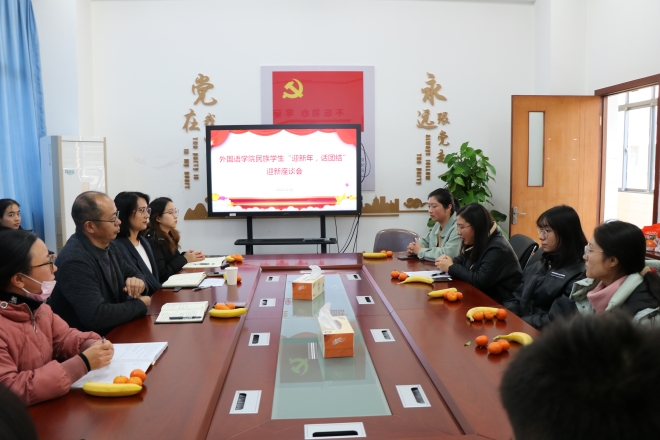 在A331召开2021年少数民族学生“迎新年,话团结”迎新座谈会。学院党委副书记刘伯贤老师、新疆维吾尔自治区教育厅派驻色色啦