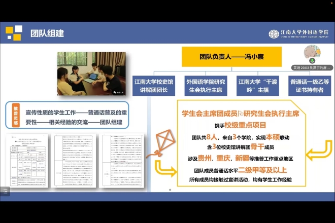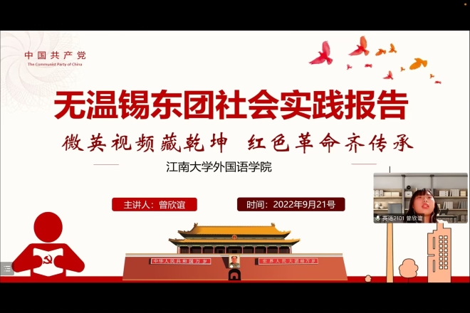 解人民之忧,以志愿精神担起社会责任。“江南春风入百家”实践团面向防疫一线医护人员子女开展“趣味知识学习”、“体能锻炼学习”、“党史团史学习”等趣味课堂,为医护人员排忧解难。访红色基地,以理论宣讲传承红色精神。“无温锡东”实践团实地参观无锡与温州的红色教育基地,并通过双语vlog传播中国声音,助力红色文化传播,让红色文化“活”起来!探民生现状,竭自身所能助力社会发展。“谱语江南”实践团推广国家通用语言文学,传承“普通话”文化,承担历史使命、助力乡村振兴。