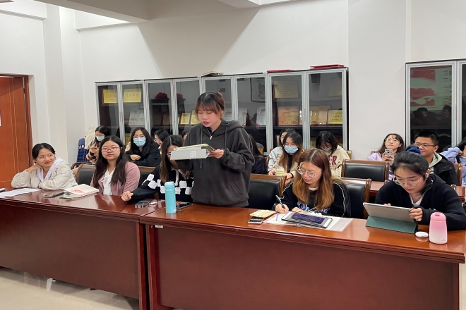 “研途奋进”第十期活动在文科楼A349成功举行。2022级全体硕士研究生及部分2021级硕士研究生参与了本次活动。此次活动的主题是“研途漫漫沐党辉,踔厉奋发迎盛会”中国共产党第二十次全国代表大会学习分享会。三位研究生党支部书记对党的二十大报告进行了领学和解读,参会同学也进行了学习心得分享。
