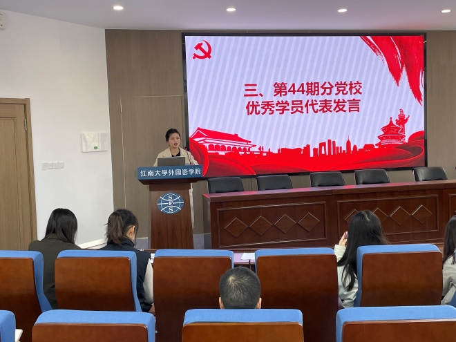 19级方漩同学作为上一期优秀学员代表发言。在分享了自己参加第44期党校培训的经历和心得之后,她表明作为积极向党组织靠拢的新青年,应牢牢抓住《共产党宣言》中的核心基本思想,不断推进自我革命,永远熟记每个人的自由发展是一切人的自由发展的条件。随后,由方漩作为代表向本期学员代表郑若琳授予党旗,全体学员起立,面向党旗郑重宣誓。开班仪式在陆芳老师布置安排本期培训班的任务和具体要求后圆满结束。