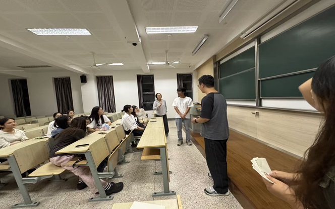 活动在温馨而热烈的氛围中拉开帷幕。在“研途启航——研路心语分享会”中,研二学长沙旭凡结合自身经历,分享了从本科到研究生阶段的心理调适与成长路径,就学业规划、社交建立与压力管理等方面提出实用建议。在问答环节中,新生们踊跃提问,与学姐学长们展开深入交流,现场反响热烈。
