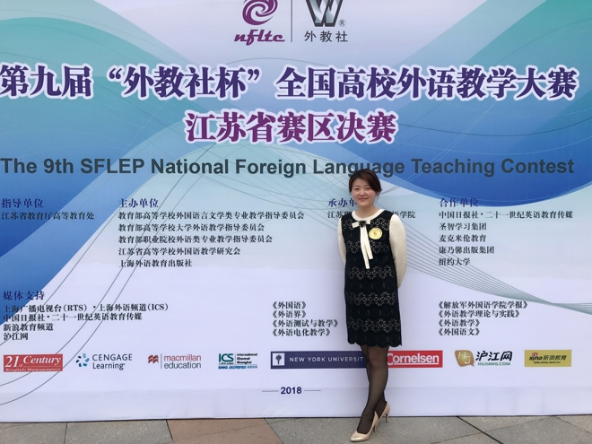 刘玲老师参加了本科视听说组的竞争。在决赛第一轮授课环节中刘玲老师就脱颖而出,取得了进入一、二等奖角逐的机会;在第二轮现场说课环节中刘老师展现了扎实的英语基本功和良好的教学理论素养,力压群芳,以较大优势获得本环节高分,最终荣获本科视听说组的一等奖。