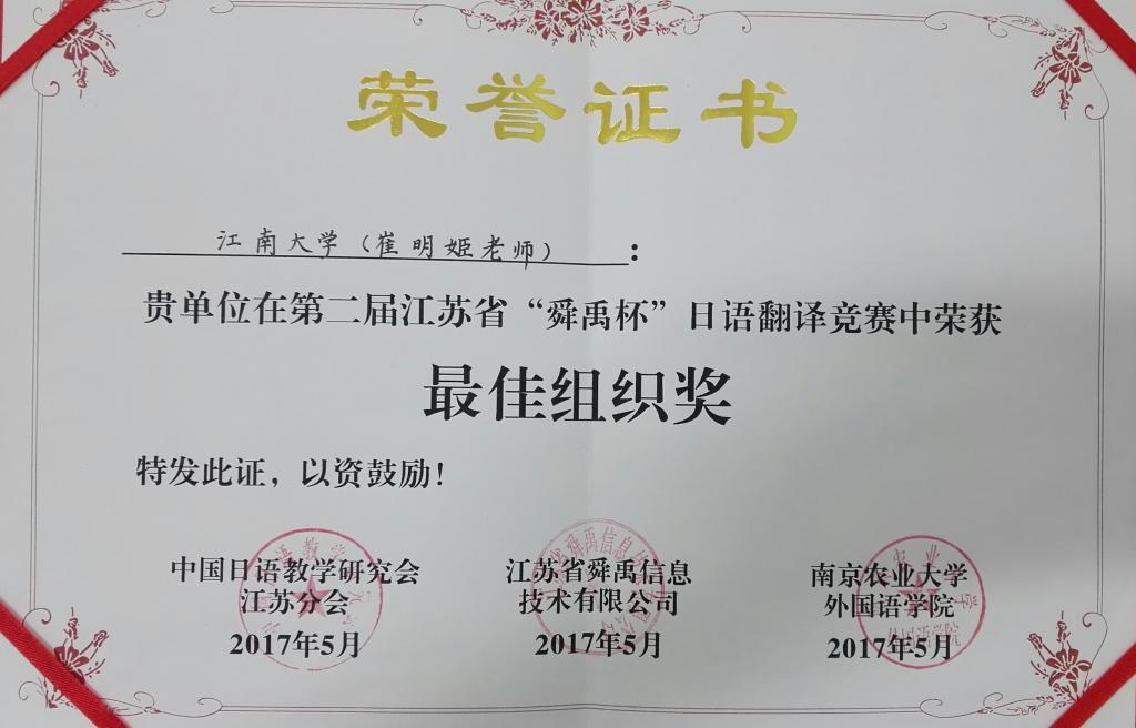 2017年5月14日,第二届江苏省“舜禹杯”日语翻译竞赛颁奖式暨学术研讨会今日在南京农业大学隆重召开。色色啦
