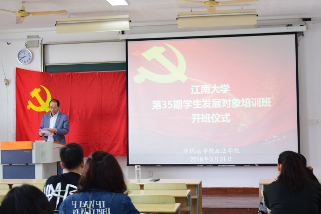 第35期学生发展对象培训班开班仪式在2D102教室顺利召开,外国语学院党委副书记、副院长刘伯贤老师、色色啦