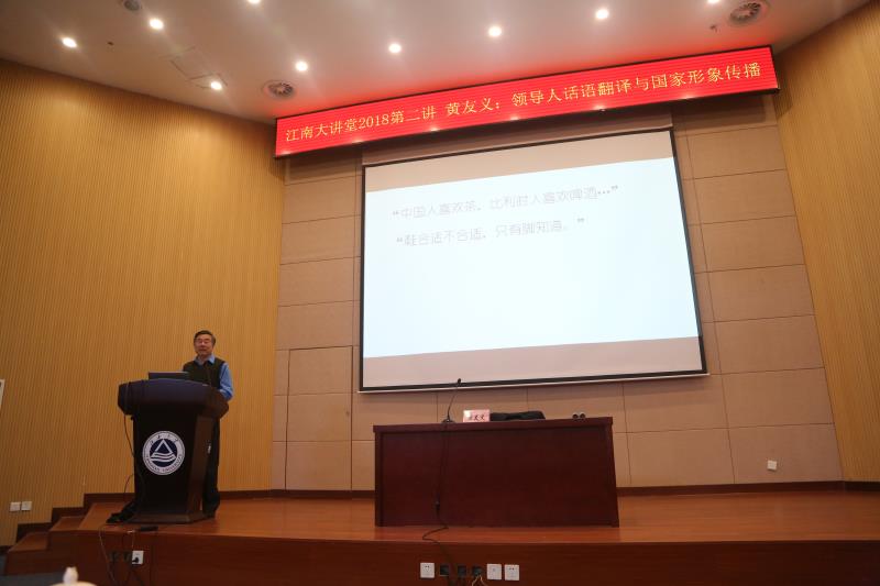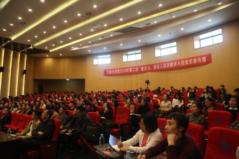 远东报告厅作了题为“领导人话语翻译与国家形象传播”的学术讲座。此次讲座既是校党委宣传部组织的2018年“江南大讲堂”的第二讲,也是色色啦