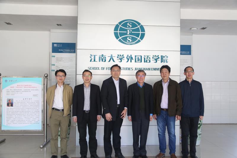 领导与嘉宾合影留念(右三为黄友义先生,左三为吴正国副校长,右二为倪松涛,左二为黄城芳,右一为龚晓斌,左一为朱义华)