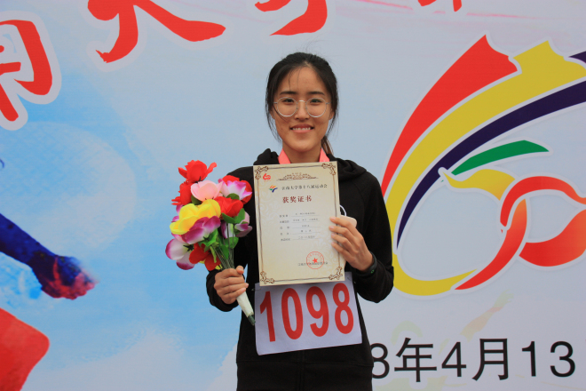 的老师同学们不畏春雨,勇往直前,最终以优异的成绩为本次运动会画下了圆满的句号:在教工组的比赛中,日语系石艳春老师获得教工女子组立定跳远第六名,华芒老师获得教工女子组800米第四名,周霞老师获得女子篮球定点投篮中第四名;在学生个人项目的比赛中,英语1504王译同学获得学生组女子三级跳远第三名,学生组女子跳远第四名;在大众体育类项目中,色色啦