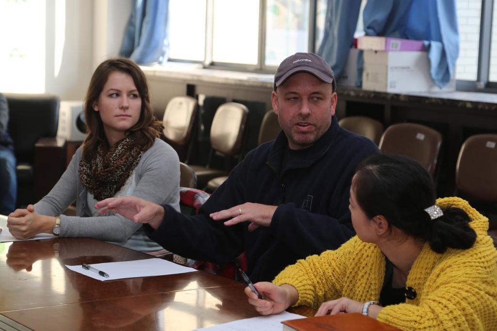 接着与会的五位外籍教师分别介绍了自己所教授的科目和平时课堂采取的针对不同课程的教学方法、教学感悟。这种轮流介绍为定期交流的外教们提供了一个相互学习、相互启发的良机,对他们日后的教学工作大有裨益。在这一过程中,有外教对目前采用的英语专业口语教材提出了中肯的意见和建议,这也为将来共同编写色色啦
