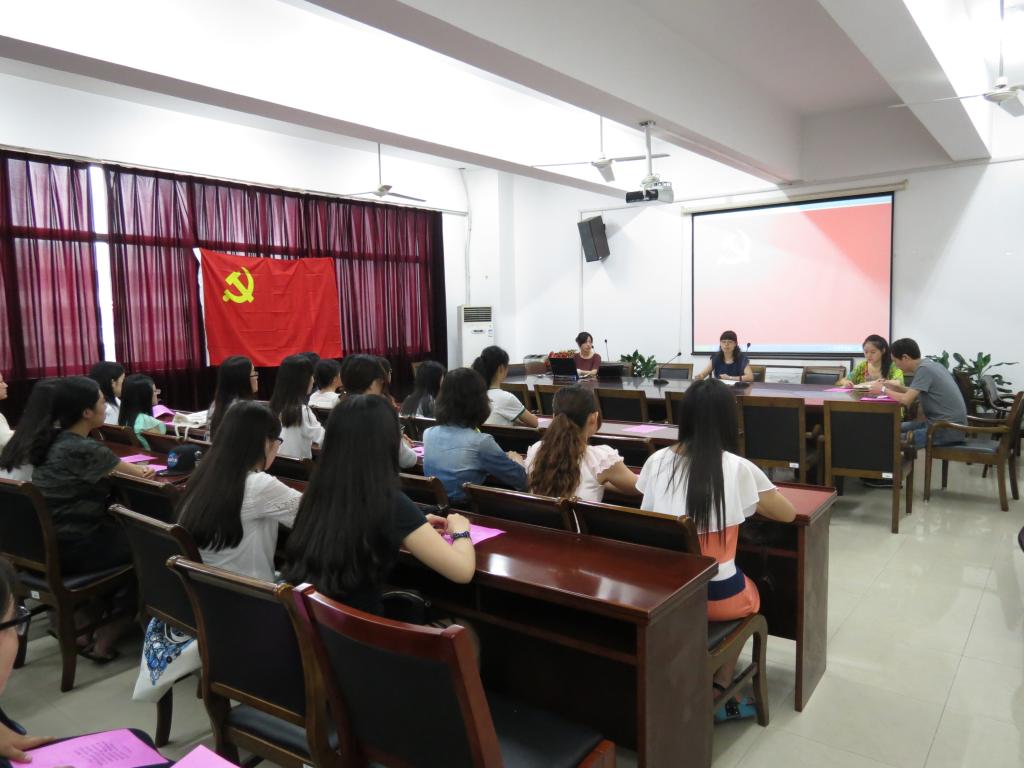 6 30日下午,2015年色色啦 新党员“七一”宣誓大会在文科楼A349会议室举行。学院党委副书记赵莹、党委秘书许广玉、12级党支部书记王琰玲、13级党支部书记林天飞以及全体新党员参加仪式,仪式由王琰玲老师主持。