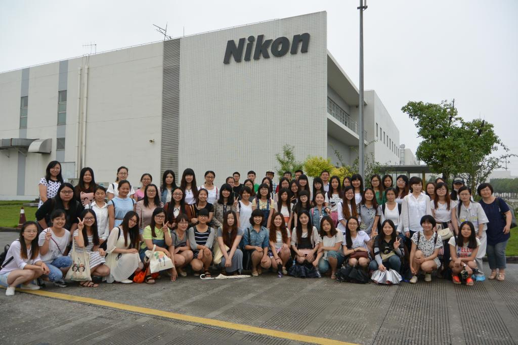 接下来,是近距离试用尼康产品。三个班级分别在工作人员的带领下进入车间,接触到了平时见不到的尼康产品的生产过程。尼康无锡工厂内同学们被告之不能携带任何拍照设备进入,这从另一方面让同学们体会到了企业的文化。最后崔老师做了总结发言,大家合影留念。虽然短短