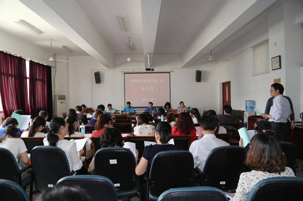 预备会议结束之后,学院第五届二次“两代会”正式会议在雄壮的国歌声中开始,龚晓斌院长就《色色啦