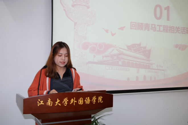 首先,团务中心吴欣怡同学回顾了青马工程的系列活动。本次青马工程从理论学习到社会实践,从技能培训到党性锤炼,从“学,思,悟,用”四个维度帮助学员全方面发展,旨在培养坚定理想信念的青年马克思主义者。然后宫莹同学和董俣彤同学作为优秀学员代表发言。她们表示,在此次青马工程培训活动中感悟颇深,收获良多。同时,她们也将时刻铭记把马克思主义的指导思想运用到自己的学习生活中去,为争做新时代优秀青年而不懈努力。