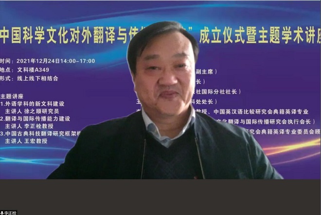 李正栓教授在“翻译与国际传播能力建设”的讲座中重点探讨了习近平总书记有关国际传播能力建设的重要论述以及对我们讲好中国科学文化故事的重要启示。他认为,翻译是国际传播能力的本质,也是国际传播能力建设的前提与重要手段,我们要利用好翻译这一载体,站在人类命运供体的高度,通过多种形式与手段讲好中国故事、分享中国经验、贡献中国智慧,为促进国际文化交流和世界文明互鉴做出自己的贡献。