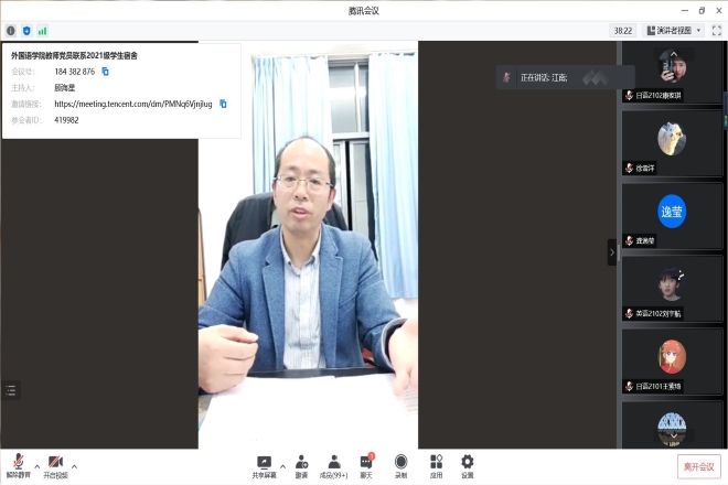 党委副书记刘伯贤召开了2021级本科生会议,刘书记号召大家积极高效地进行线上学习。面对疫情的严峻考验,同学们应服从疫情指挥要求,听从学校安排,及时测温上报。他还鼓励同学们多参加锻炼,保持良好的体魄和健康的精神状态。刘书记传达了学院关于教工党员联系宿舍的相关规定,逐一介绍了党员教工的情况,告知每位学生遇到思想、学业、心理、职涯规划等问题都可以咨询宿舍导师,鼓励学生加强与老师的沟通和交流。