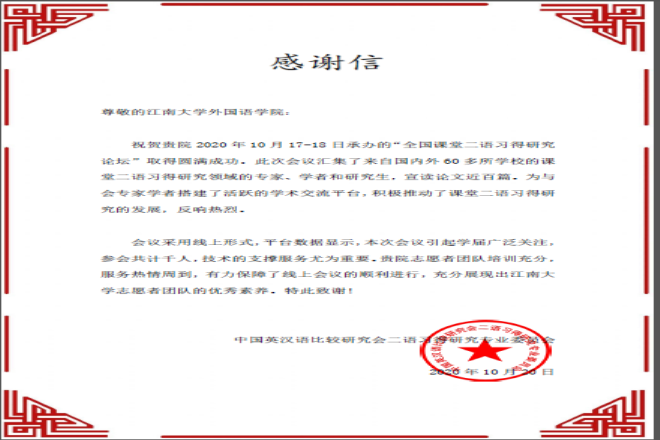 承办的第二届“全国课堂二语习得研究论坛”取得了圆满成功。本次会议采用线上形式进行,汇集了来自国内外60多所学校的课堂二语习得研究领域的专家、学者和研究生,参会共计千人。本次论坛志愿者全程展现了积极向上的风貌。