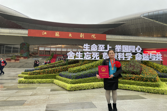 分团委书记兼学工办主任杨艳老师荣获全省抗疫先进个人,在江苏大剧院主会场参与表彰。