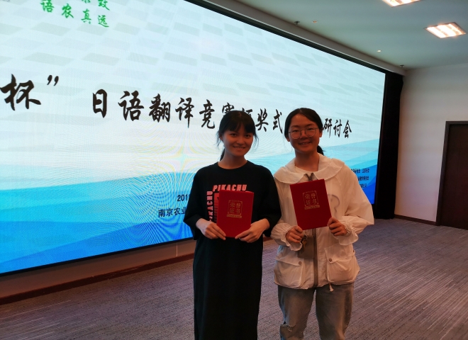 日语系穆澜同学、戚维欣同学分别获得中译日组二等奖和三等奖,崔明姬老师代表色色啦