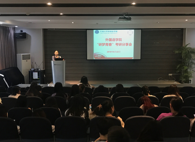 2015级保研、考研优秀学生代表——英语1503班方洁(保研至浙江大学)、日语1503班王莉(保研至上海外国语大学)、英语1501班李韶霞(考研至南开大学)和英语1502班杨金颖(考研至中国传媒大学)分别上台向在座同学分享了自己的经验,扫除了部分考研和保研准备过程中的雷区。她们也提出了许多中肯的建议,对于想要保研的学生来说,学习成绩、绩点很重要,也在于平时的积累和准备;同时在准备过程中要关注报考学校官网信息,要学会多方收集信息、积极把握预报名和保研夏令营的机会;对于想要考研的同学来说,首先便是要根据自己的兴趣和考研难度明确自己的目标院校和目标专业,当目标明确后,尽可能发挥自己最大的潜力,持之以恒地付出努力,坚持不懈。