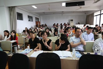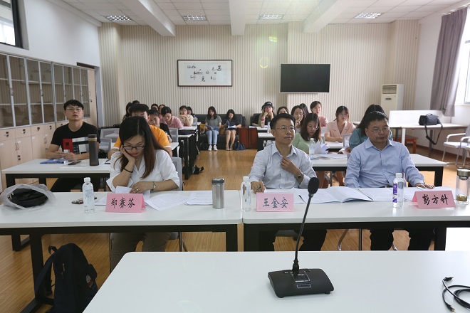 开幕式之后,论坛主旨发言正式开始。在本届研会主席路丽同学的主持下,王籽运、吴佳、白雅冰三位研究生分别进行了主旨发言,严敏芬教授、王金安教授和顾琦一教授则对其发言进行了一一点评。三位同学的展示条理清晰,研究课题切合本次论坛“innovation”的主题,老师们的点评专业且严谨,既表达了对研究课题和研究方法的肯定,也指出了其中的不足之处,令在场的同学们深受启发。