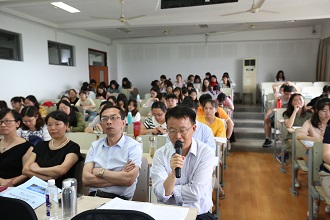 随后,顾琦一教授作为导师代表发言。顾老师将研究生论坛称为阶段性必修“仪式”,这个仪式让学生能展示自我研究成果,加强师生间学术交流,为接下来的研究奠定良好基础。通过分享自己的经验,顾老师句句发人深省,既强调了认真读书的重要性,也传授了如何与导师相处的“宝典”,让同学们受益匪浅。