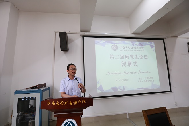 11点30分,论坛闭幕式在外院楼A349进行,闭幕式由白雅冰同学主持。方文开副院长致闭幕辞,方院长首先对为本届研究生论坛成功举办而辛苦付出的老师与同学表示衷心的感谢,对获奖选手表示的热烈祝贺,随后他指出研究生论坛是为全体研究生提供学术交流的绝佳平台,是开阔学术眼界和提升科研能力的大好机会,号召每一位同学都积极参与,多多交流,查找自身不足,提升科研水平。他还鼓励同学们要多读专业文献,因为学术研究是一个潜移默化的过程,只有每一天积累知识才会造就长足的进步。