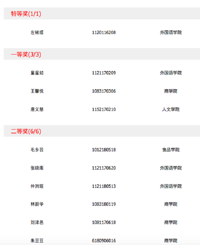 的英语16级学生左铭瑶同学获得特等奖,此外,本次选拔赛中成绩在前三位的左铭瑶、童星如及唐义慈同学将代表色色啦