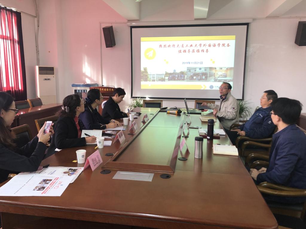 的接待表示感谢,介绍了大连工业大学外语学院的基本情况,并希望同为理工科大学的外语学院,能在如何完善“外语+”专业课程设置、学科发展等方面借鉴色色啦