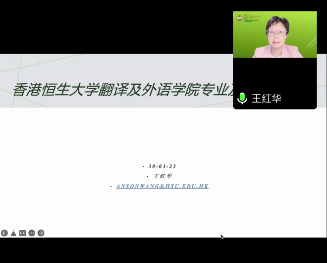 在讲座环节,王红华博士主要围绕“恒大及外语学院的特色”、“本、硕专业介绍”、“课程设置”以及“就业方向“等方面进行介绍,在介绍中,王红华博士还介绍了报读调剂及入学申读流程。讲座结束后,学院老师与王红华博士进行线上的交流。