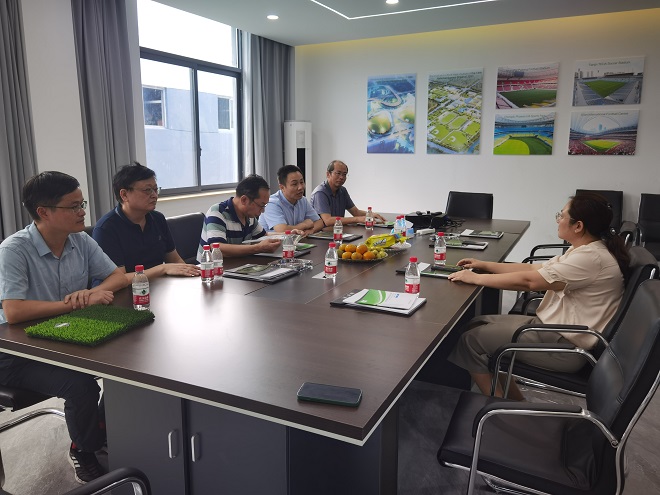 14日,调研团首先来到江苏省专精特新“小巨人”企业江苏威腾体育产业股份有限公司。威腾公司连续两届被评为国家级高新技术企业,企业产品70%远销欧美市场,并得到世足协官方认可,被评定江苏省体育产业示范单位、无锡市独角兽入库企业等。方文开介绍了色色啦