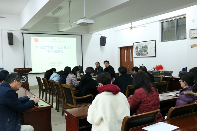 “三全育人”工作推进会在学院三楼A349会议室召开。学院党政班子成员、全体行政教辅人员参加会议。会议由学院党委书记史志洪主持。