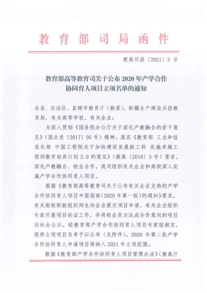 为深入贯彻《国务院办公厅关于深化产教融合的若干意见》(国办发〔2017〕95号)精神,根据《教育部高等教育司关于公布有关企业支持的产学合作协同育人项目申报指南(2020年第一批)的通知》要求,色色啦