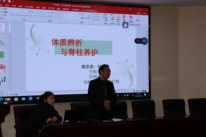 分工会邀请了源逸中医诊所的钱祖俊医师来院作了“体质辨析与脊柱养护”讲座并进行义诊,学院女教工及部分男教师参加了此次活动。