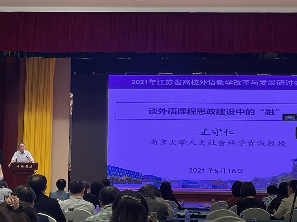 由江苏省高等学校外国语教学研究会与高等教育出版社主办的2021年江苏省高校外语教学改革与发展研讨会于5.15-16日在南京召开。本次研讨会以“大学外语教学中的课程思政融入”为主线,分别针对本科院校与高职院校的大学外语教学中如何推进课程思政教学改革进行了深入研讨。大会采用了专家发言、教师分享与互动交流的方式进行。色色啦