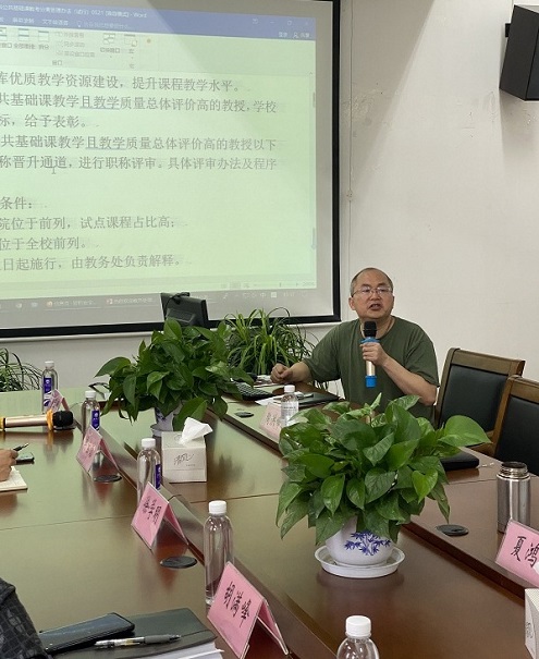 方文开院长、朱义华副院长、理学院副院长胡满峰,人工智能与计算机学院副院长夏鸿斌等承担全校公共基础课程的相关学院领导及教师代表等出席了会议。